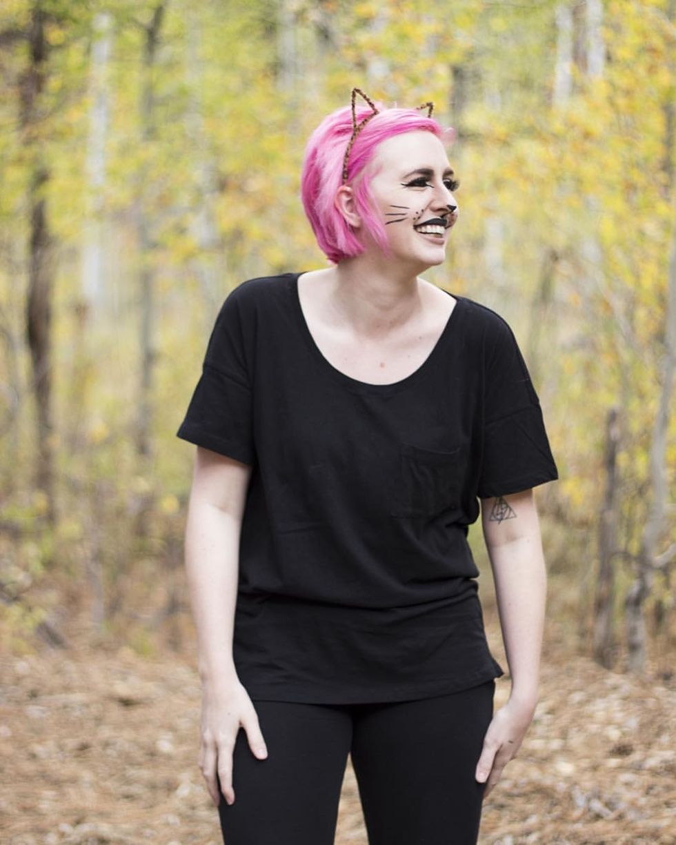 Black leggings: Check. Black T-shirt: Check. Black shoes: Check. Now head out to get a headband and hand-make some ears and paint on some whiskers. Easy peasy.