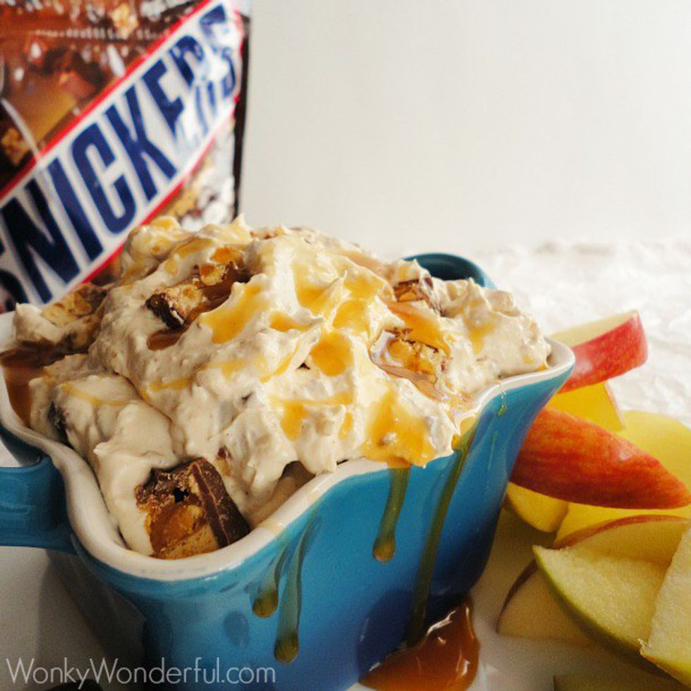 Who would have thought that chopping up Snickers in a bunch of creamy cool whip and cream cheese would make for an amazing appetizer?! Bring some apples and pretzels to make this amazing dip into a tailgate classic.