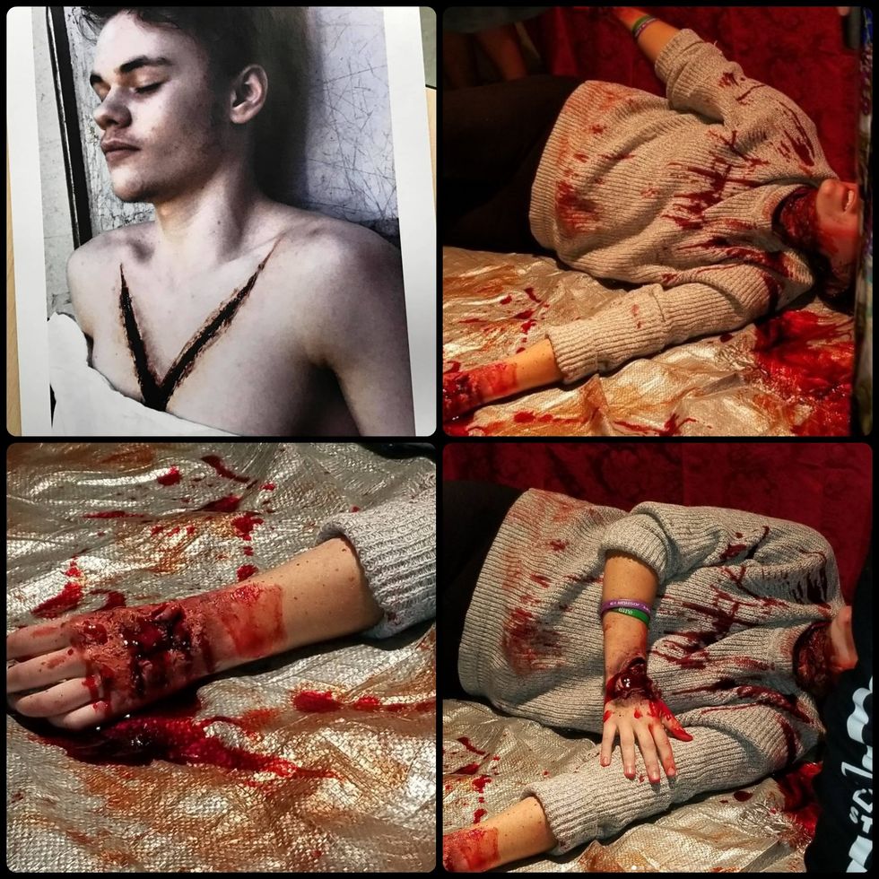 I started working with special effects (sfx) makeup and it became something that I got good at. Now I definitely still have a lot to learn in the field but that's okay with me. I started off in a theater learning how to do stage makeup like simple bruises and minor cuts or rashes. From there I googled everything I could on sfx makeup and grew my makeup kit. I spent hours learning new techniques and how to work with different materials.