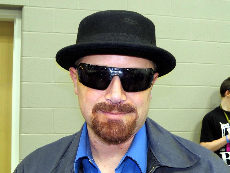 To be Walter White all you need is a bowel hat, glasses, and his signature facial hair look.