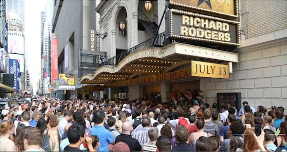 Like I said, the lottery starts two and a half hours before every single show and closes half an hour later. If you get there before that, you'll have to wait in a line outside the theater. This line can stretch back past the Marquis Theatre next door and usually loops around a couple times, but don't let the size of the crowd scare you away from entering. As long as you’re there on time, your entry will be in the bucket and mixed in with the rest of the entries before each name is picked. You actually don't even need to wait in the line if you get there a bit after the two-and-a-half hour mark. The entry line moves so quickly that anyone arriving after ten minutes of the lottery being open won't even find a line.