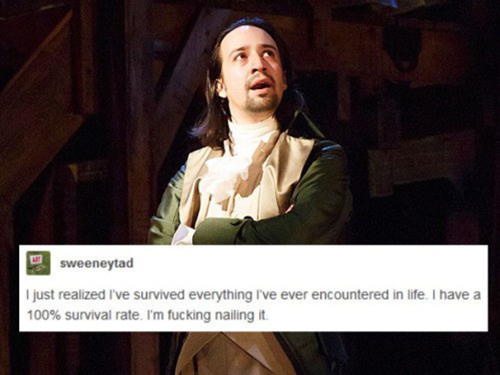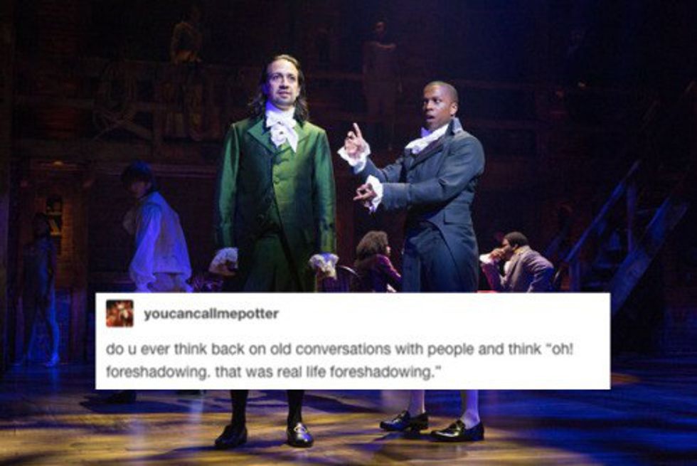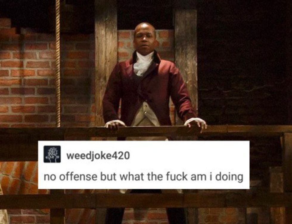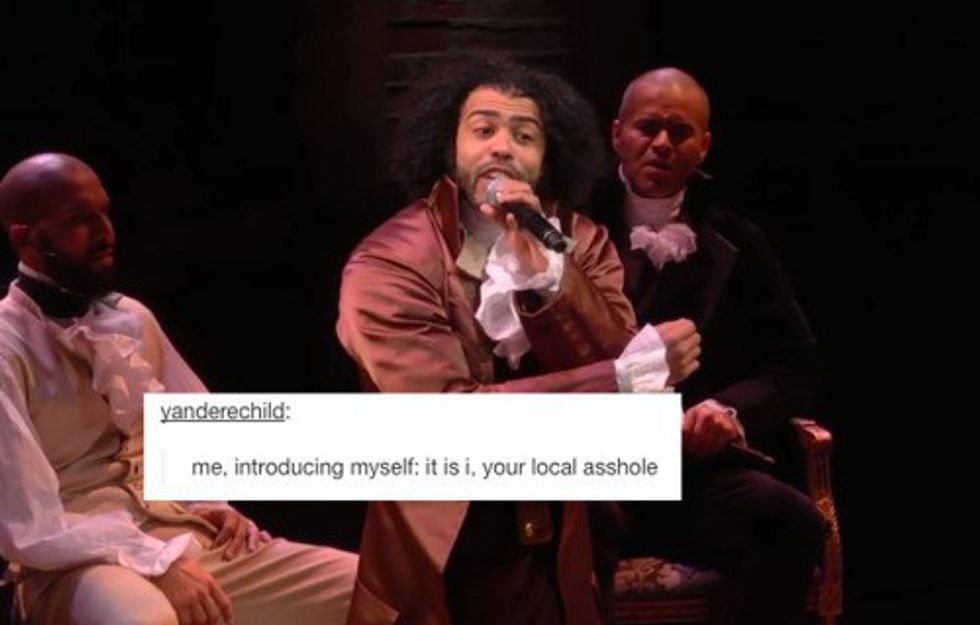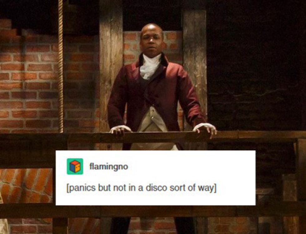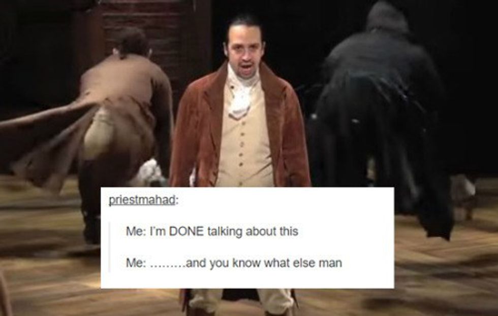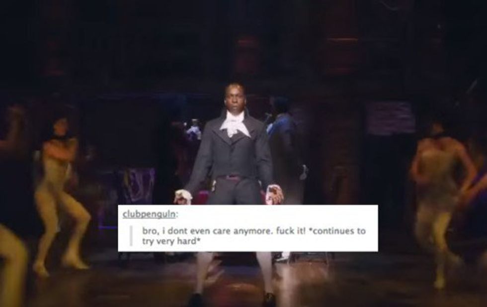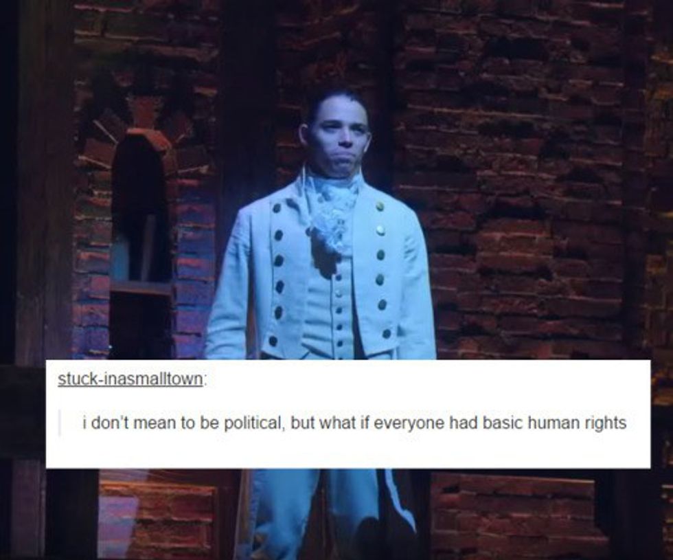 Thanks to bwuhbwuhbwuhbwuhbwuh on Tumblr, who posted the text posts overlaid on the Hamilton stills on her blog, I've picked a few choice posts and put them in chronological order of the show, so that if one comes across a friend who seems "kinda sorta interested but doesn't want to be overly invested" can still get a general idea of what it's about.