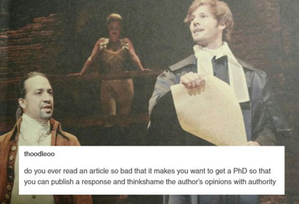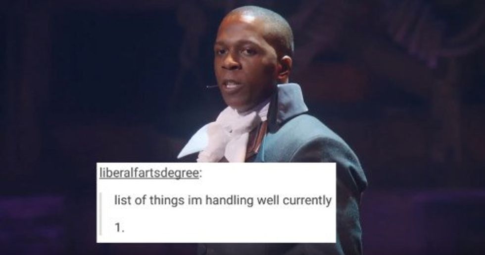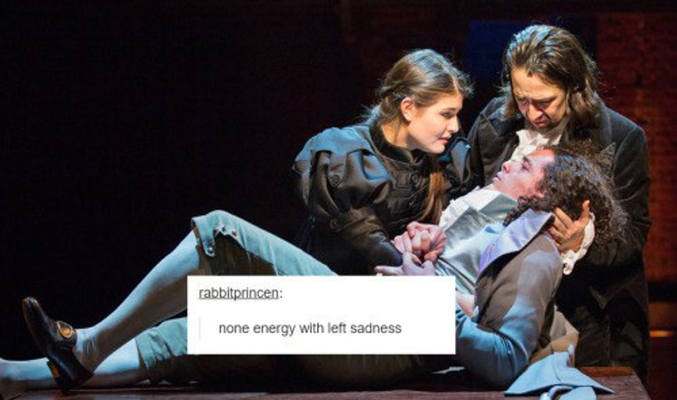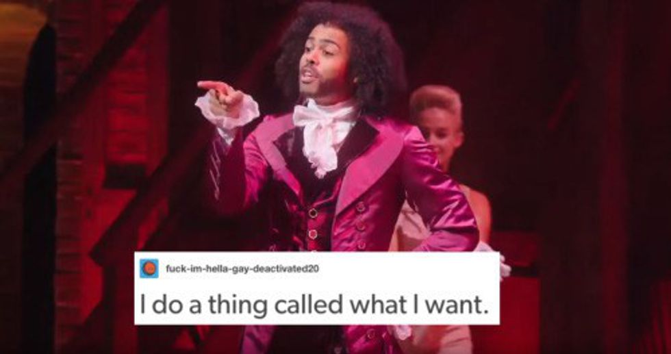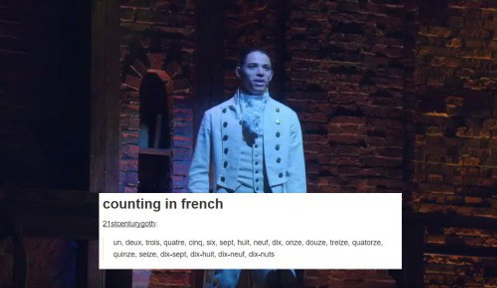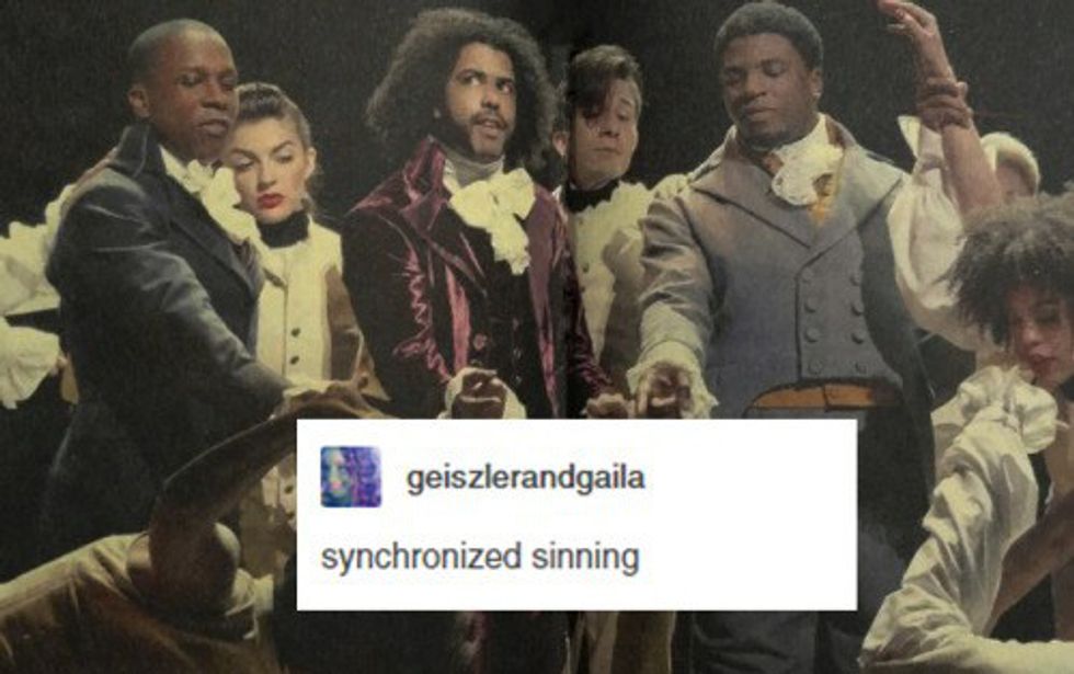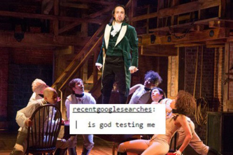 If you're like me, though, and you love "Hamilton" but have a few friends who are reluctant to give the cast album a listen ("Because, seriously, Broadway? Get a life!"), I have a solution. Rather than giving them a quick rundown as to the overall plot of the musical, which might come off as a little dry and give away potential spoilers, I have found a series of text posts compiled on top of pictures from the musical that are both funny and vague enough to keep people interested, but not give too much away.
