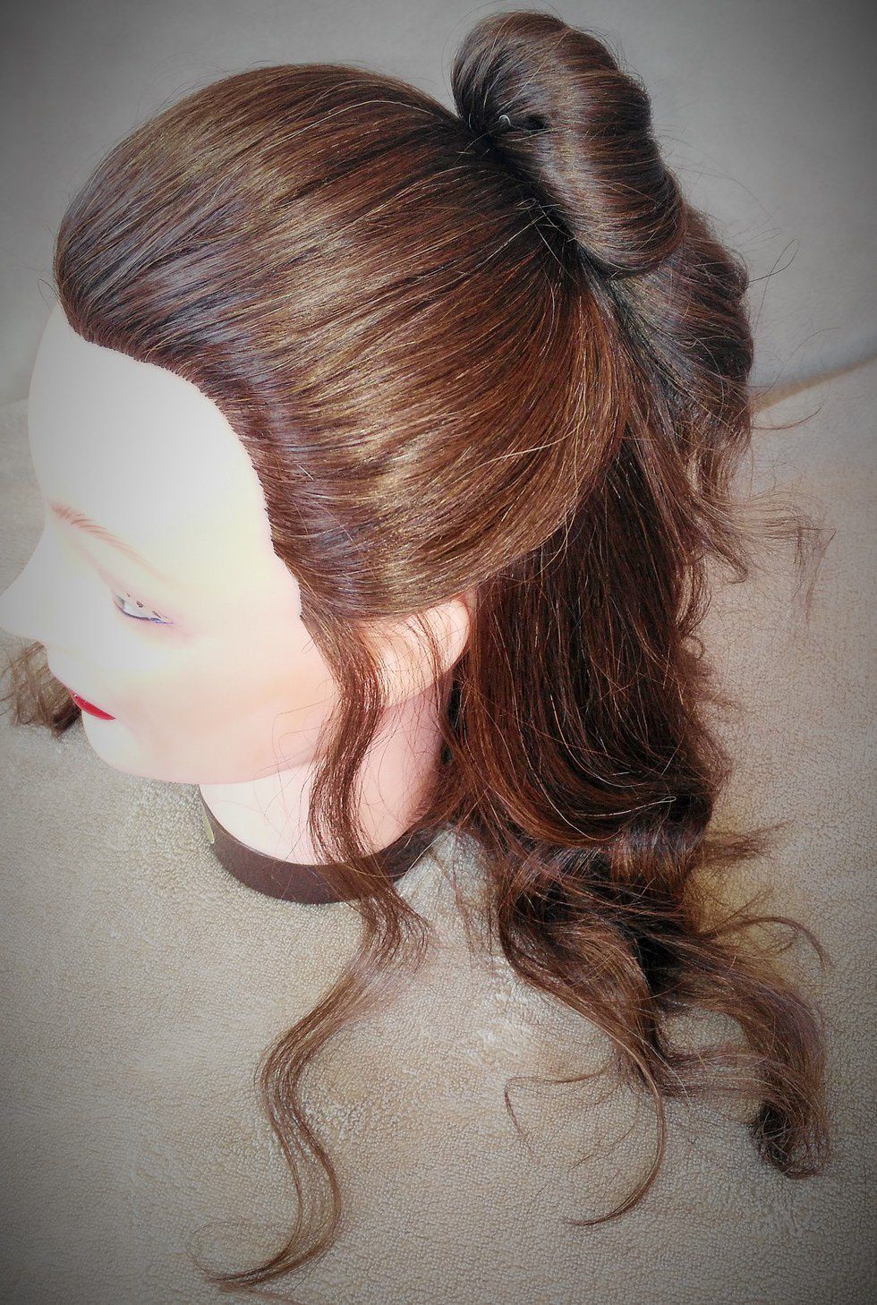 Alexander Hamilton was very ambitious during his life so I thought to go with business attire. The hairstyle is actually very simple and easy to do. Just tease the top and smooth the sides anchoring it with a bobby pin.