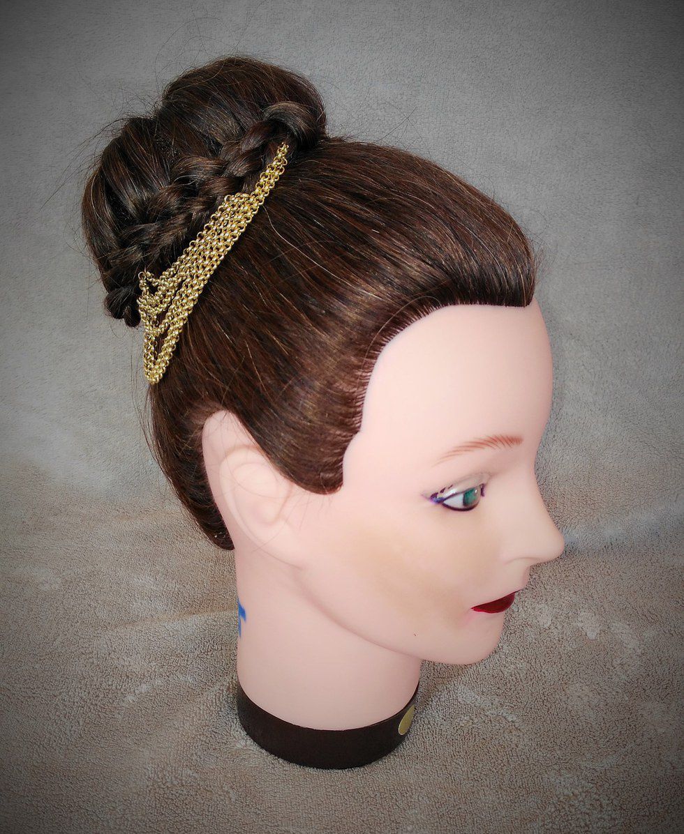 The hairstyle is greatly influenced by actor Daveed Diggs. Most of us don't have hair quite as magnificent as his, so we have to make do with a bun, and I just added a gold chain.
