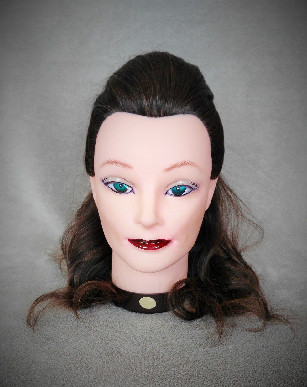 She is witty and fun, so I tried to translate it into her style. A yellow dress in honor of her costume in the show, paired with pretty turquoise accessories. The hairstyle is lovely curls with the top sectioned off and put into a bun.