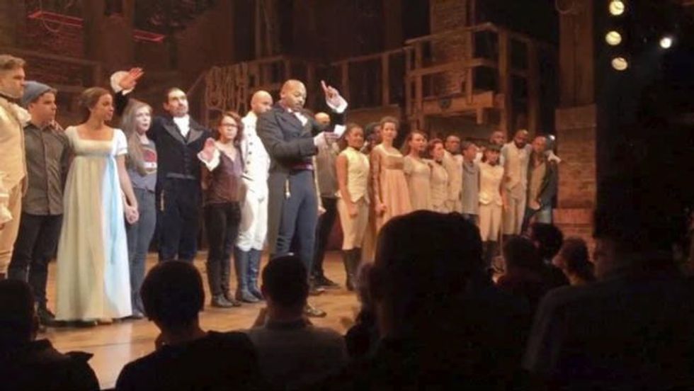 Outside of the cast joining together for their statement, which I really don't have an issue with - neither did Pence, the biggest concern of the night is the audience that peppered Pence with boos, only to cheer like fans where beating a rival sports team during the statement. It was an embarrassing moment from those in the audience, whom we'll never know, because all we can care about is a Twitter account.