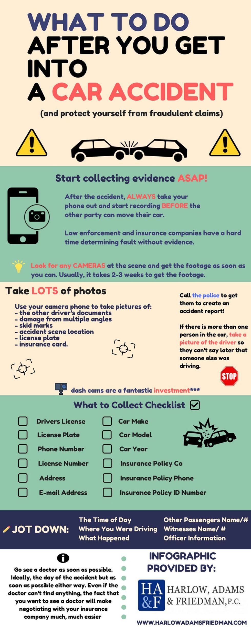 Here is an infographic made by Harlow, Adams & Friedman P.C. with some useful tips to guide you on what to do after a car accident.