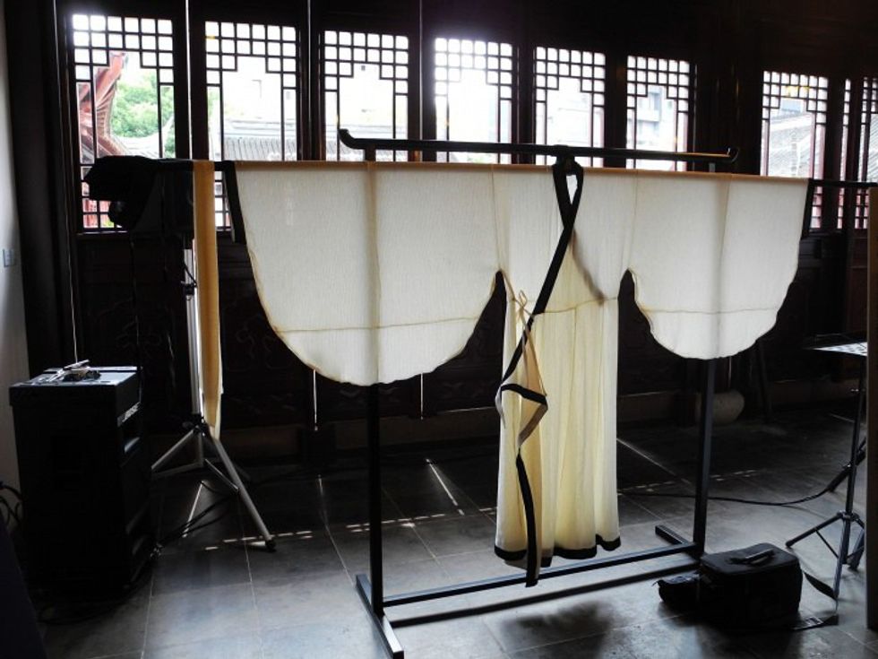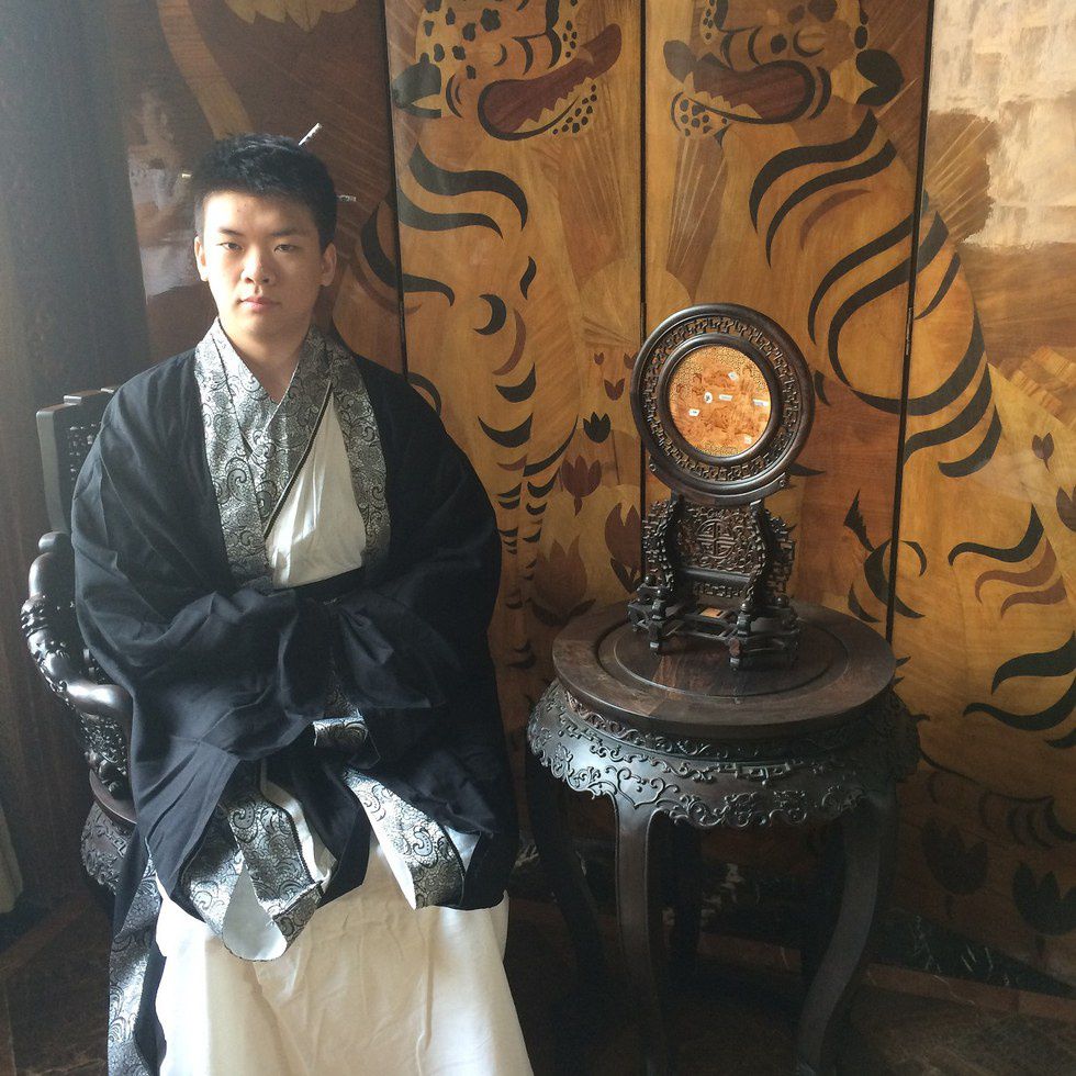 Minutes later, I stood before a mirror in awe as my eyes swept over my ensemble again and gain. The image of a young scholar who probably lived somewhere around the 1200 BC stood before me, his confused expression mirrored my own. I could be the son of a peasant, stepping through the grand gates of Chang'an for his first imperial official examination, or I could be a hermit who lives in a bamboo forest, dedicating his life to calligraphy and poetry; I could even be an adviser to the emperor, proudly offering his sagely insights to the embodiment of the true dragon.