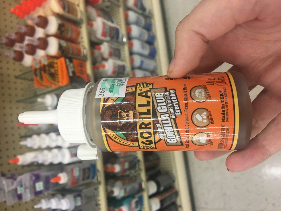 5. Place Gorilla Glue on the back of the bottles, let them dry. Then put another layer.