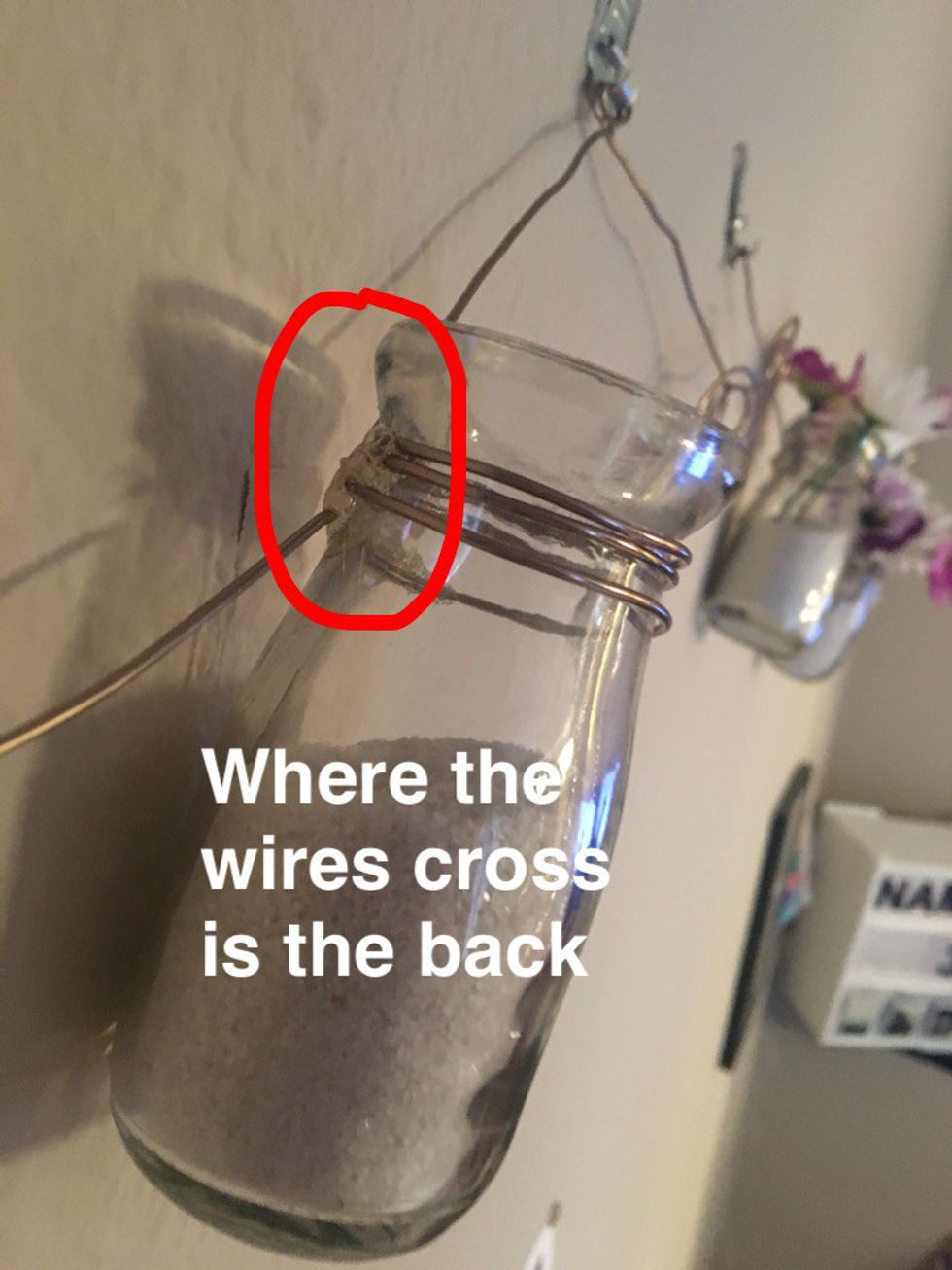 6. Test the glue once it is dry by lifting the bottle up by the wire.