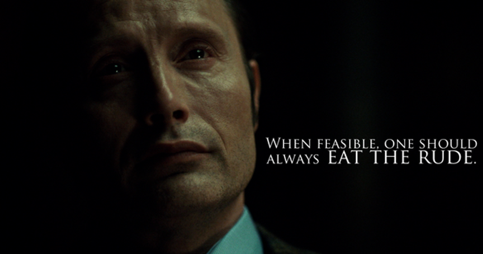 Everyone has a pet peeve, something that they just can't stand. Most people have a good handle on suppressing the urge to do something about it. Hannibal Lecter did not fight that urge. He hates rude people and when given the chance he prefers to dine on them, calling them "free-range rude." His ideal victim is someone who is rude, which isn't a good thing for most people, especially if you are having a bad day. Hope you are on your best behavior.