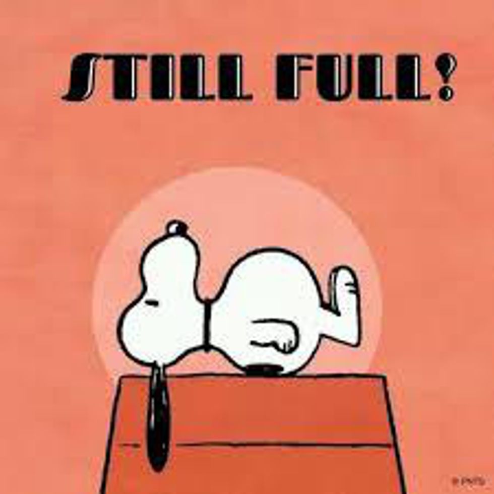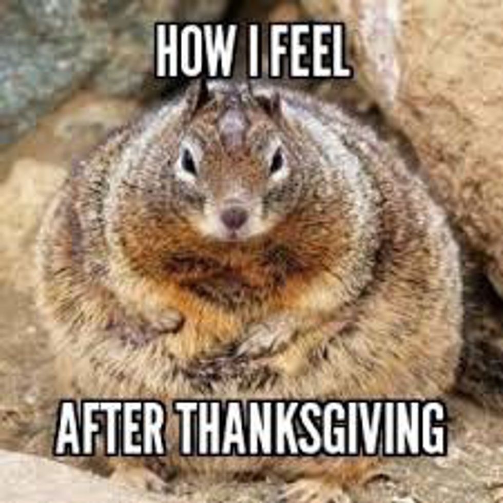 Let us just accept the fact that this is an accurate representation of how we feel after thanksgiving. Stuffed, bloated, and still wanting leftovers! Those of you who are brave enough to exercise, good for you!