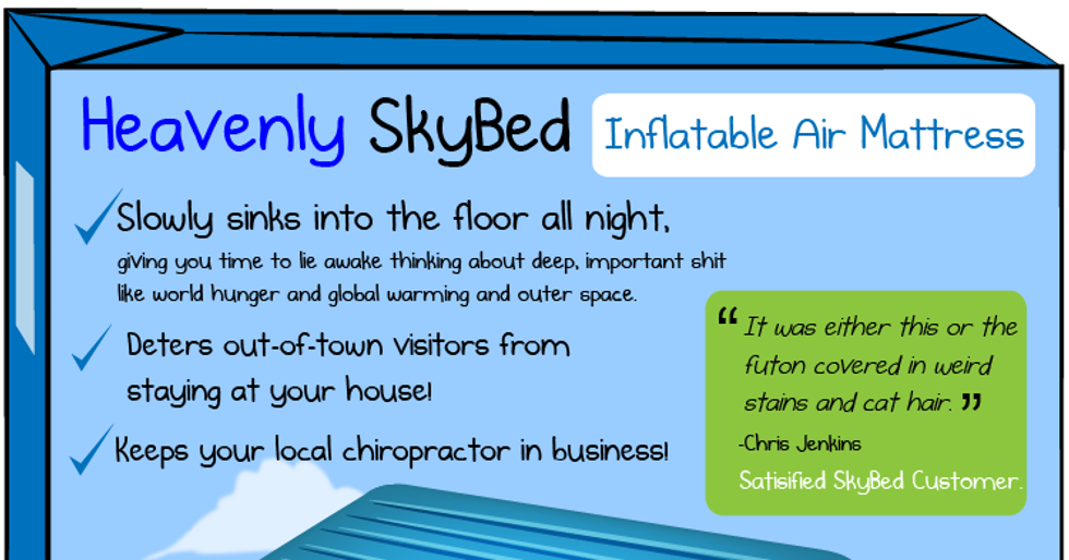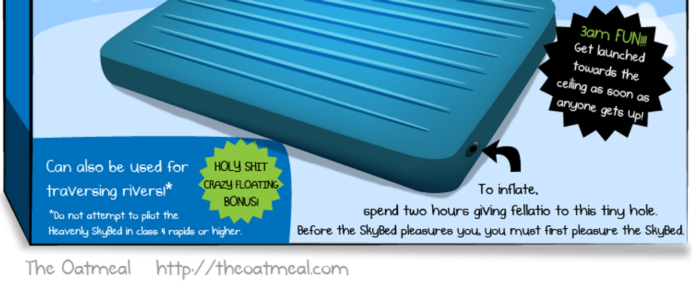 This piece of genius came from the genius known as the Oatmeal, a cartoonist and self-proclaimed lover of Nutella. Thank you, Mr. Oats, for finally putting my hatred of air mattresses into a form others can understand.