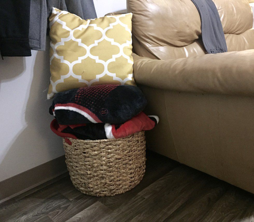 You can't settle in to watch a movie without a fluffy blanket to lay under. I like to keep a basket of fuzzy blankets right next to the couch for convenience, because more often than not I'm cold and like to have a pile of blankets on me.
