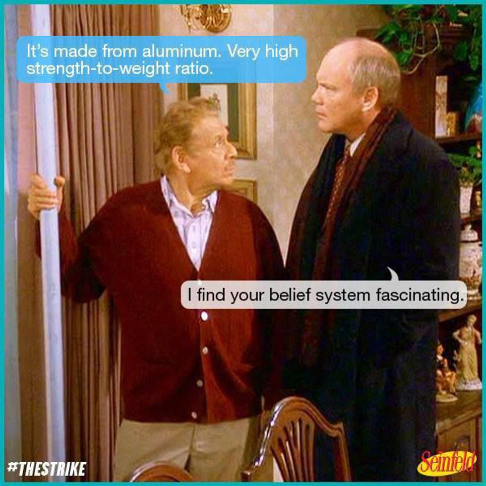 For all of you folks who despise the obsession with gift-giving nonsense that is the modern Christmas tradition or who have no Christian affiliations and feel overwhelmed, there is a different holiday to get you in the spirit of family-time and spreading cheer. On December 18, 1997, the episode of NBC’s sitcom "Seinfeld" named “The Strike” aired and introduced the holiday Festivus. Essentially, Festivus is celebrated December 23 every year as a quasi-rebellion against the religious and commercial pressures of Christmas. Its traditional elements are both hilarious and horrifying: Airing of Grievances, Feats of Strength, and, of course, the Festivus Pole. No dirty, shedding tree will litter your household with pine needles in accordance with this holiday. Instead, a bare aluminum pole graces your room of choice.