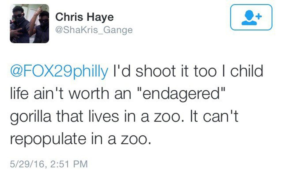 That is the most nerve-racking thing to result from this incident - the belief that people think the gorilla should not have been sacrificed for the sake of the life of a child. Although you may not be terribly concerned with the lives of other human beings, you are still a human being yourself. And that should mean something to everyone. Because in the end, I would choose to protect my brother over a beast every time. The slaughter and murder of millions of unborn and the mass shootings in schools, airports, shopping malls, and movie theaters should mean something to you. More than a gorilla ever could.