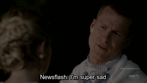 (Okay, maybe not so supportive of the last one, but low-key still want to do it.) You know all my favorite foods. My favorite thing is when I totally forget a food and then you say, "you really like this", and then I'm like "YES, YOU'RE SO RIGHT" i.e. everything you make ever. You are willing to watch movies with me even if you're pretty sure you won't like them and you read almost as much as I do. I still can't thank youenough for forcing me to read Gone With the Wind, even if it was the longest book I've ever read. You watch Scream Queens and obsess over how ridiculously funny Chad Radwell is with me. (this gif is me last week.)
