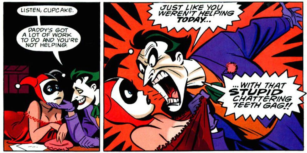 Harley didn't even realize how abusive the Joker was towards her until late in their relationship, that's how manipulative he was. It was Harley's best friend, Poison Ivy, who finally pointed out the Joker's terrible behavior, who finally told Harley to leave him.