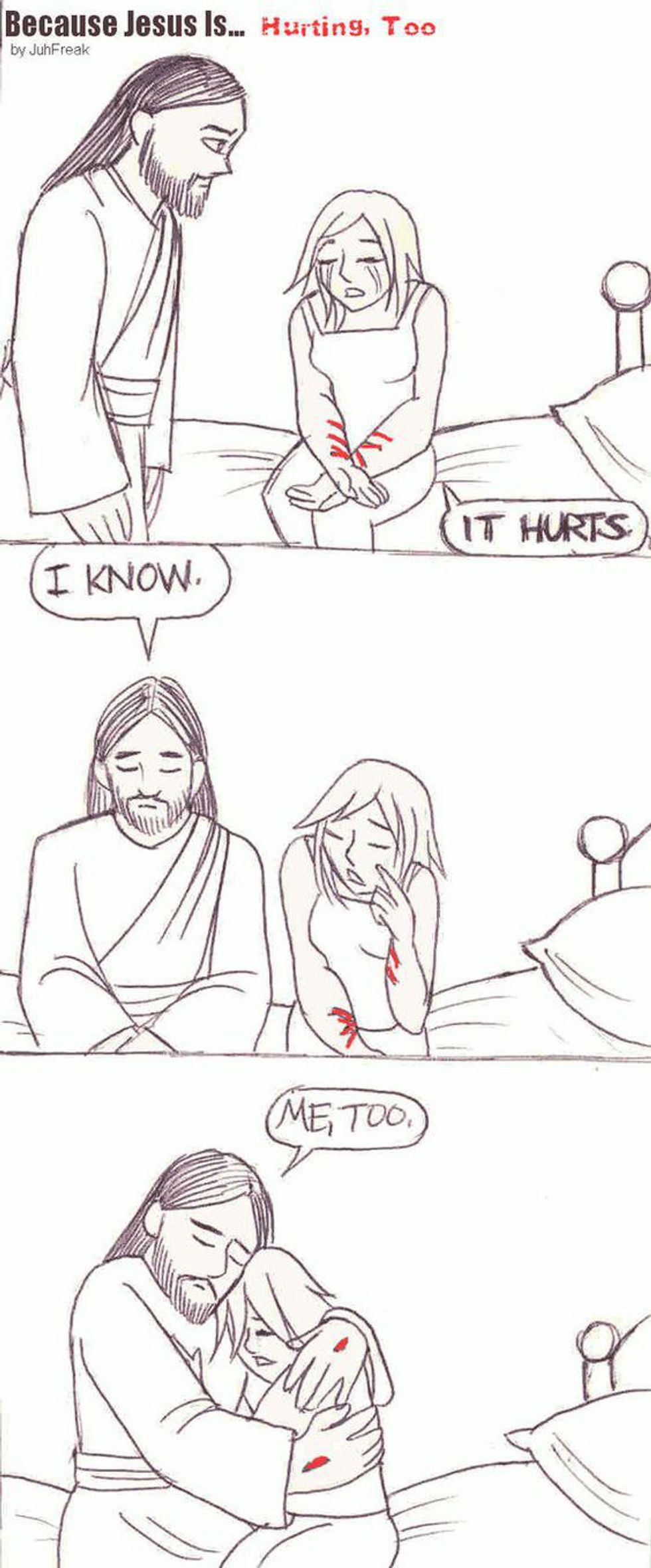 When I started recovering from self-harm, this was a huge...I don't know..shock? I never thought of it like this, not until I started letting Him in. He struggled on earth, too. Maybe differently than I have, but He still gets the pain that can come living in this temporary world and it brought me so much comfort knowing I've got him to fall back on. My provider and healer.