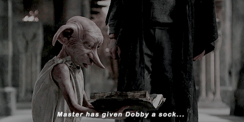 No, Harry didn't actually hand him the sock. Harry stuck a sock into Tom Riddle's diary, which Lucius Malfoy gave to Dobby. When Dobby opens the book, he sees his ticket to freedom all thanks to Harry Potter. Now, watching and reading this the first time, I was not emotional. But just wait, it's going to be hard to see this scene again.
