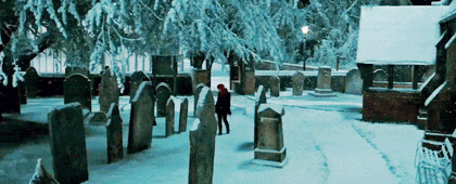 9. When Harry and Hermoine visit Godric's Hollow where Harry's parents are buried in "Harry Potter and the Deathly Hallows."