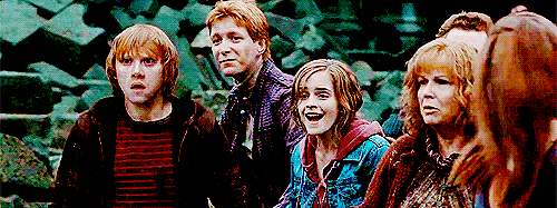 15. And then when everyone realizes Harry isn't really dead, and George turns around to tell his twin brother the news.