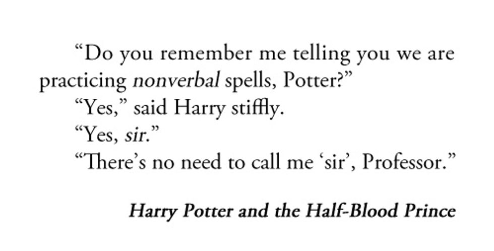 This one has nothing to do with Harry being strong, or brave, or compassionate, no. This is just to highlight the fact that Harry Potter was the sassiest wizard of his age, and the movies barely scratch the surfaces of this VERY important character trait. While dealing with matters of life and death no teenager should deal with, Harry was also just that, a teenager. We get glimpses of his teenage troubles, like asking Cho to the Yule Ball, but we rarely get any of his teenage sass, which created a nice balance between the serious events in the story and the mundane situations of any student's life. This specific passage from the Half-Blood Prince is one the most iconic Harry moments because for once he manages to put Severus Snape in his place, and in the cleverest way imaginable.