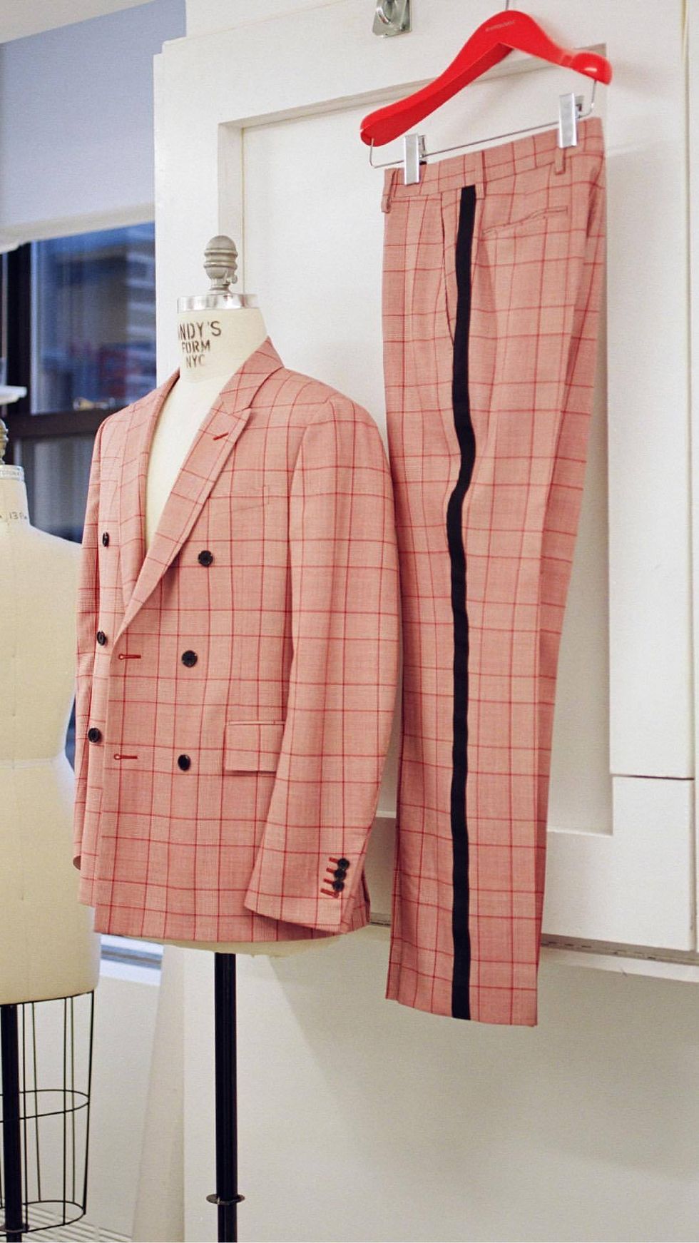This suit gave me some serious P.T. Barnum vibes for sure. The millennial pink velvet jacket and high waisted trousers with gold trim are just so iconic and he pulls it off seamlessly.