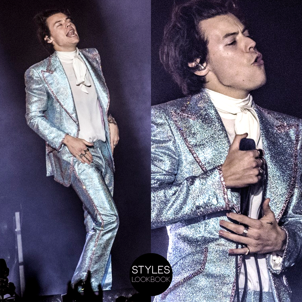 Harry Styles has been serving some serious looks for us on this tour and I cannot wait to see what outfit he'll whip out for the Chicago show this summer on June 30th! I'm hoping for something custom made from Gucci with PLENTY of sparkles and glitter.