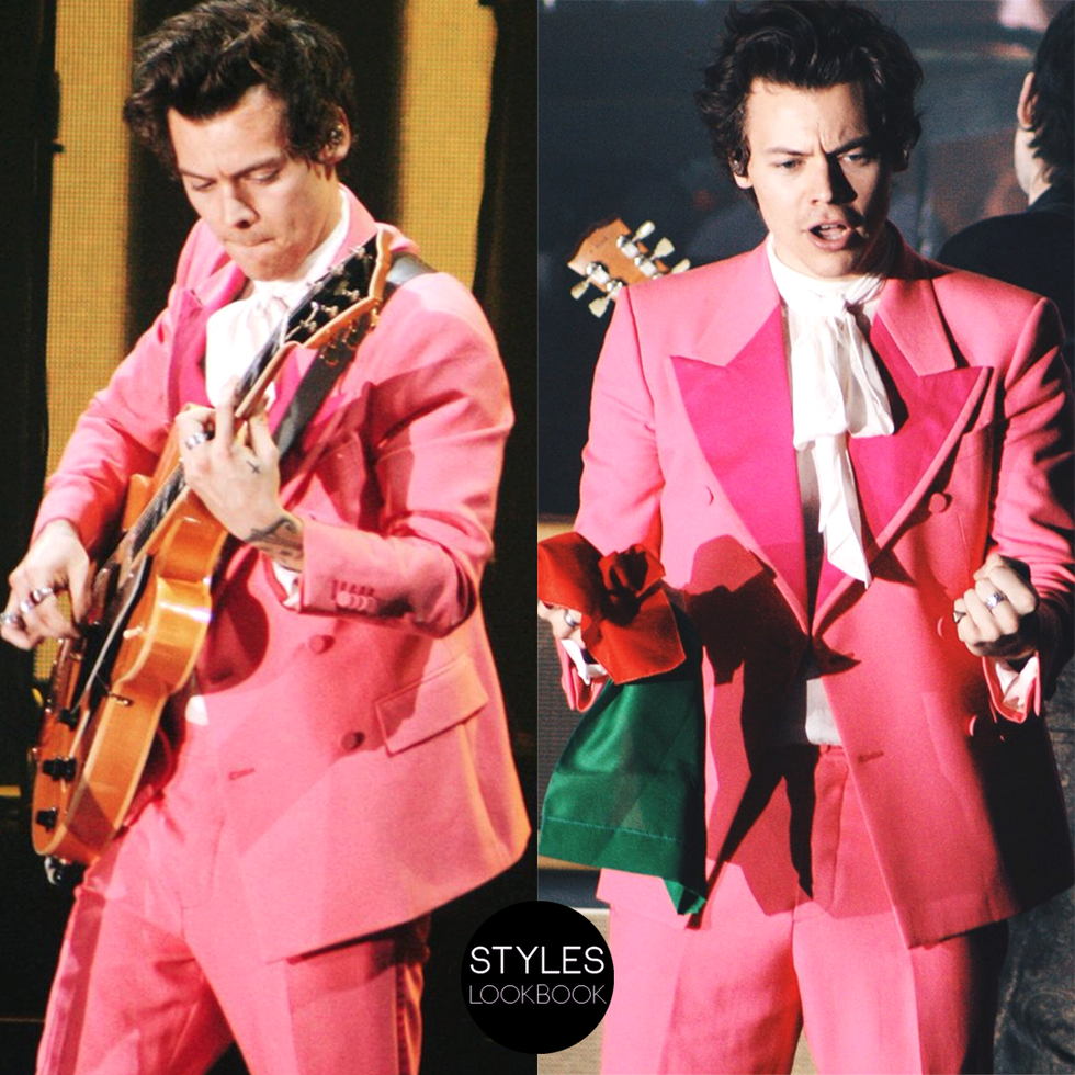Not only did Mr. Styles have a gorgeous pink suit, but some flashy metallic silver boots to match.