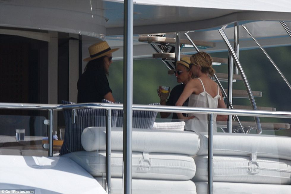 Styles reportedly invited Jenner on the trip along with some of his friends for New Years. There are several pictures of the couple cuddling and swimming with friends. On New Year's Day, both Style's and Jenner's mother, Anne Twist and Kris Jenner, came aboard to spend time with the couple. DeGeneres and Portia de Rossi made an appearance for lunch during the trip.