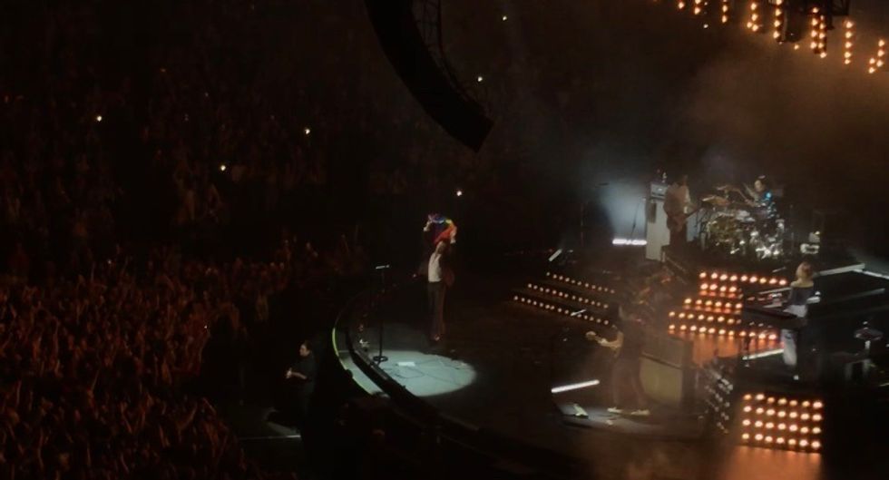 He brought out a pride flag (as he does with every concert) and wished everyone in the arena a "Happy Pride!". He encouraged us all to be whoever we would like to be in the room and to dance and sing our hearts out. He told us that he wouldn't get to do any of this without us and he asked "but they said no.".