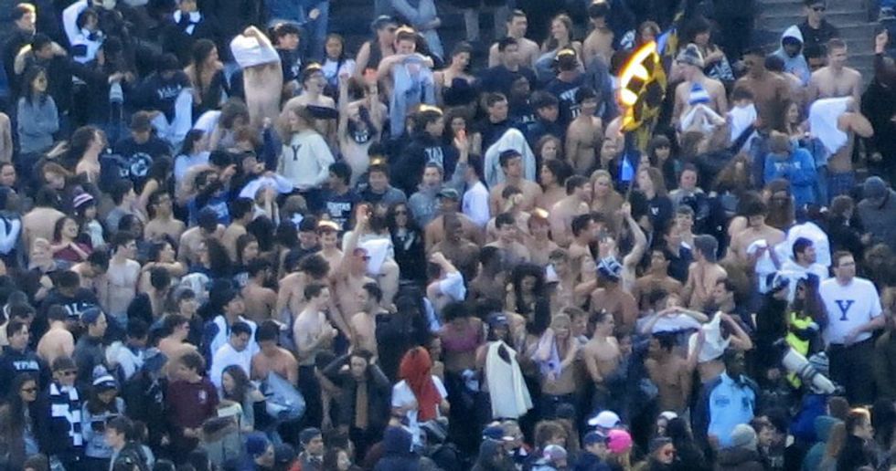 11. Saybrook, one of the colleges at Yale, performs their traditional Saybrook strip (and it's cold in New England)