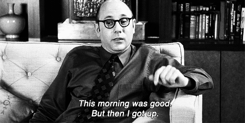 You would think after I get a shower it is all going to be uphill from there. EH WRONG. I have to make my morning coffee and head straight for class, or work whichever is going on that day. Either way they both suck, and I get there and I loathe my life because I am there and not in my bed. The morning is the worst time of the day because your responsibilities pull you from the one love in your life that would never leave or betray you, and you can't do anything about it. Unless it is the weekend, and you have nothing to do those are the best kind of mornings where you can just lay in bed all day, and not care about anything, but that happens only 2 out of 7 days. So the rest of the 5 days of the week I hate mornings.