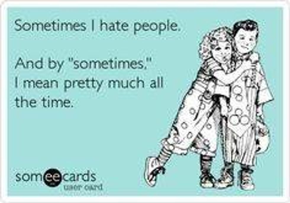 I hate people, and I'm not sorry about that. Sure, I have a couple close friends who I would do anything for (you know who you are), but other than that, I really am not a people person.