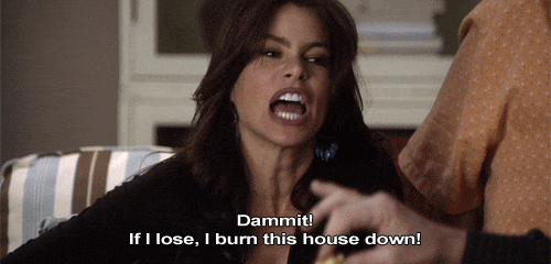 Accusations of cheating and taking too long during turns rear their ugly head. (Apparently, Grandma literally has an ace hidden up her sleeve.) Everyone wants to end the game more than they want to play it. Except suddenly now Dad is all upset he's not winning, so the family must finish what they started under the pretense of "Commitment." The only thing shorter than responses to each other is the time during turns. Ugh. You keep hitting your brother's elbow. "Give me some dang room to breathe, bro!" Can someone just win already? Suddenly you're on your third – or forth(?) – glass of wine. Who's idea was it to play this dumb game anyway? They should never be allowed to suggest anything ever again.