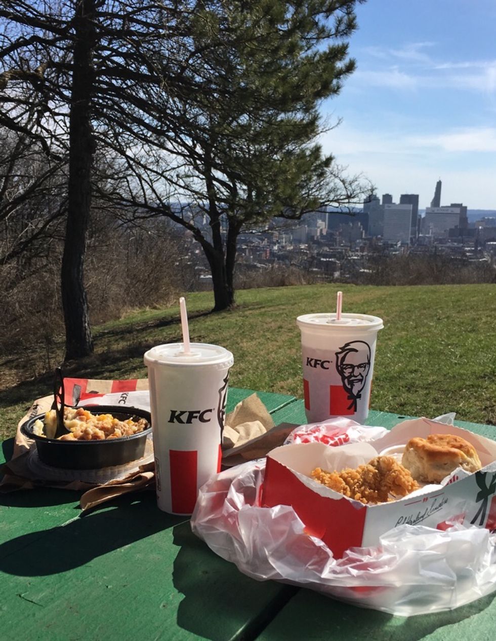 Grab a bite to eat with some friends and go for a picnic with a great view! Whether it overlooks the city or it's in the middle of the woods, there's nothing like enjoying a meal outdoors. (By the way, this is not a KFC ad, I just wanted to share this glorious lunch I had at my local park.)