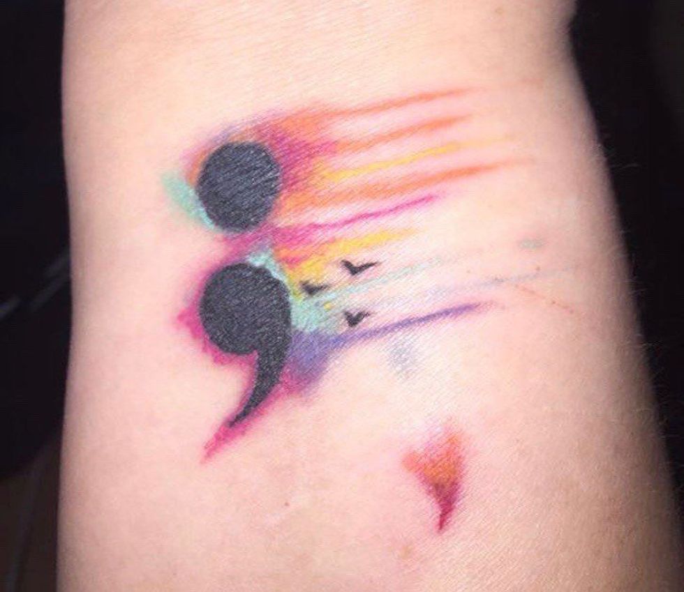 I got the inspire tattoo on my arm for the semicolon. I was a cutter in high school and even though I eventually stopped, it’s still a part of my life in a way. It may not define me, but it shaped me. I learned about the Semicolon Project and I instantly fell in love with the idea. A semicolon is used when an author could have ended a sentence but chose not to. The fact that I’m also a writer was an additive bonus to the concept. I added the book because, yes I love to read, but certain books that I have read have really inspired me to do more and be more.