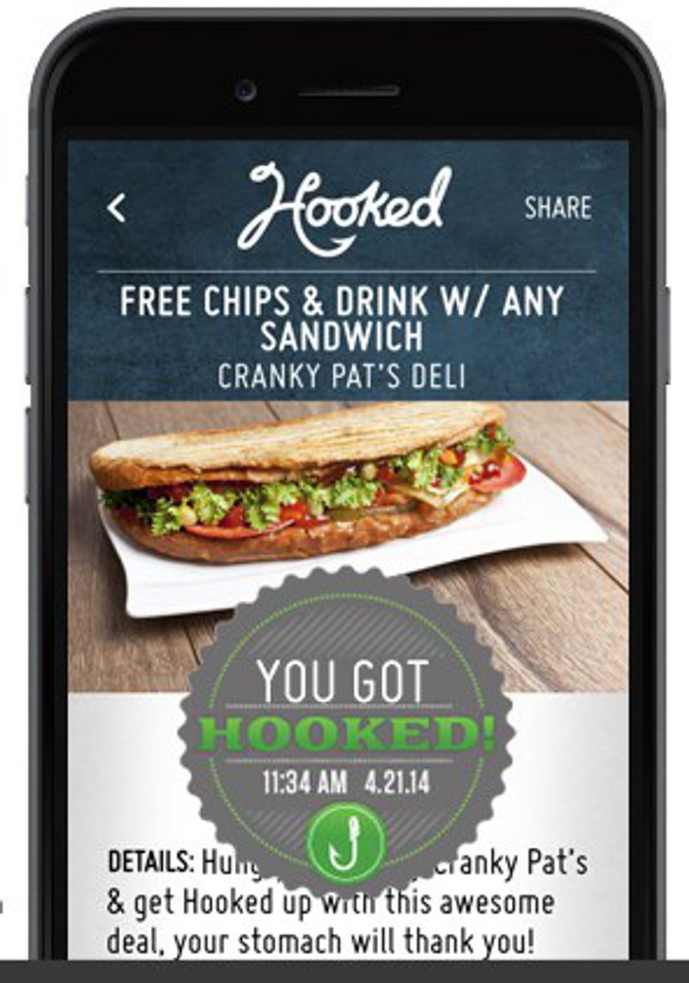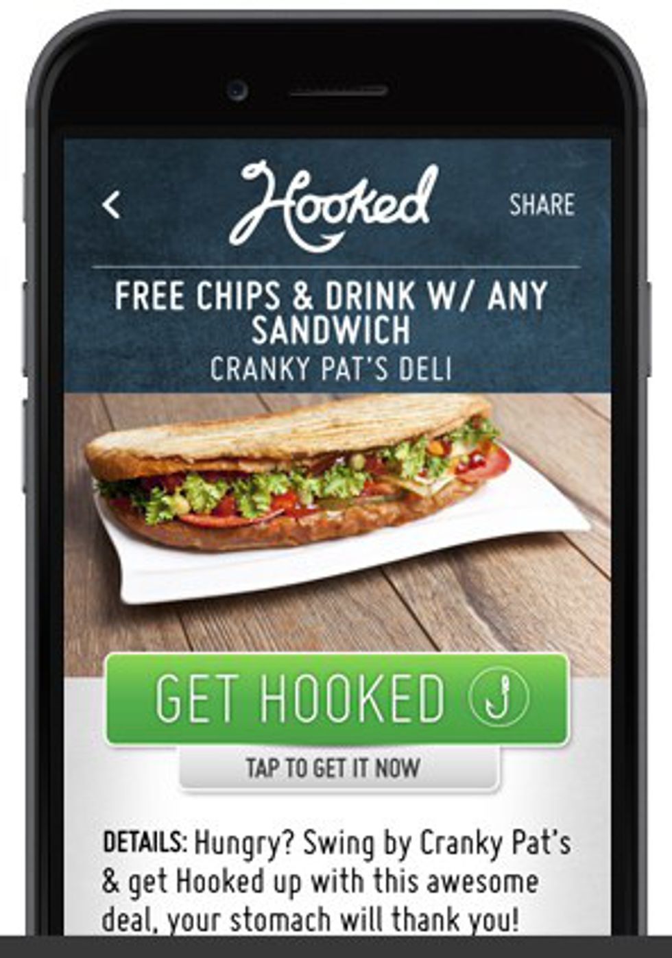 You download the app in the App Store or Play Store if you are Team Android. It'll be under "Hooked Deals."