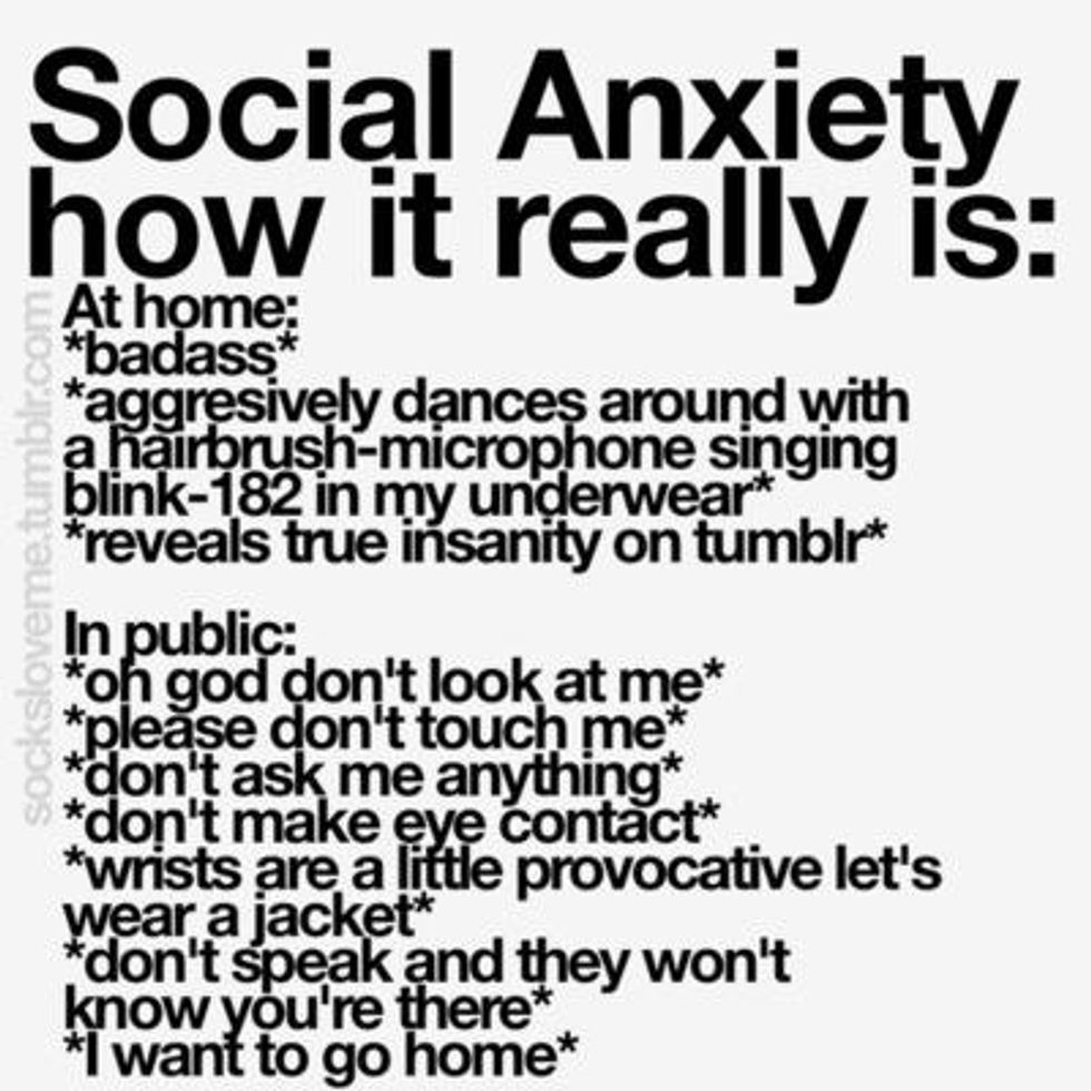 All of those things affect your everyday life when you have social anxiety. You wish you were different everyday because you can imagine all of these scenarios in which you have more friends or an actual life. At the end of the day you can't change who you are. You have to just roll with it. You learn to cope with it and you know maybe this is for the best because if you were more outgoing maybe you would have more drama in your life than you do. You know that it has probably saved you from some heartbreaks and painful times. So at the end of the day you are content with the way your life is even if it is a hassle to have social anxiety.