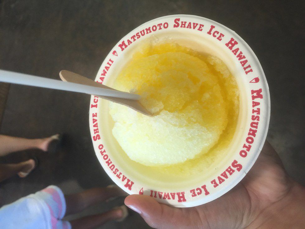 Sno-Cones are a popular summer treat on the mainland (the continental United States) but with shave ice (shave, not shaved) is finely ground ice which allows the flavorings to get to all of the ice instead of it just pooling at the bottom of the sad paper cone. You can also add ice cream and adzuki beans and you have perfection in a plastic boat/cup thing.