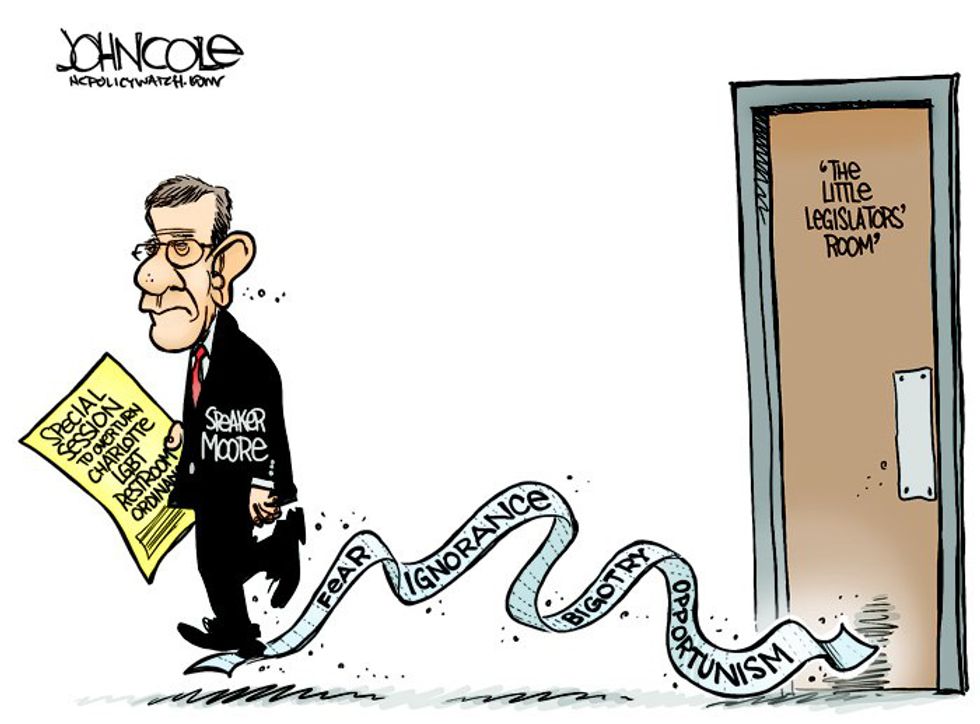 The discussion and implications of HB2 highlight two vital issues: the disapproval of transgender individuals in modern society, and the prominence of rape culture, specifically as it affects women. Not only is it a waste of time to connect these two otherwise unrelated societal issues, but it is ludicrous to infringe upon the rights of transgender individuals, and defend this injustice with society's inability to properly condemn sexual harassment/assault. Often, proponents of this bill argue the importance of keeping men out of women's bathrooms, saying that without the bill, any man will be able to enter a women's bathroom at will.