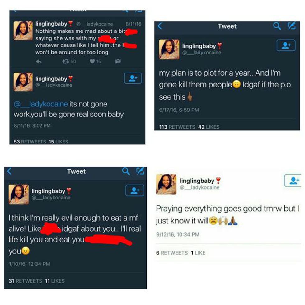 The main suspect of the crime is another female on Twitter named, "linglingbaby" also known for the Twitter handle, "@___ladykocaine."
