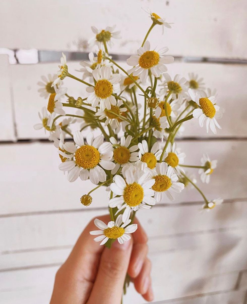 Infamous for its calming affect and is also good as an anti-inflammatory. You should ingest the chamomile flowers and leaves through steeping it in tea or making it into a tincture.