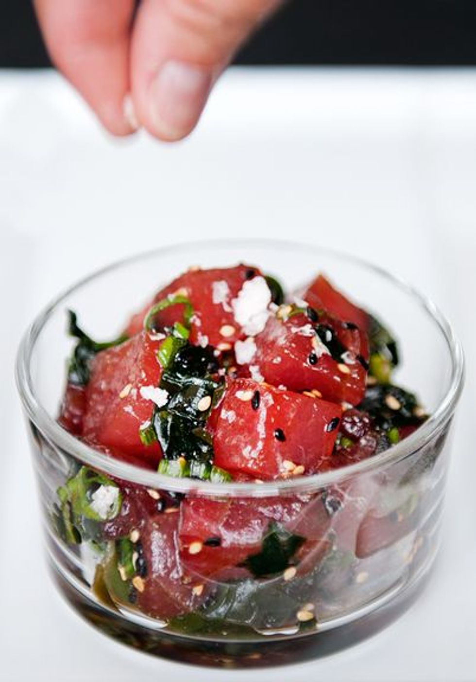 Also, here's one of the most delicious ways of eating raw tuna - famously served at restaurants such as Nobu in California. A bit more spicy than usual and has ginger coding to it, depending on where you are ordering from.