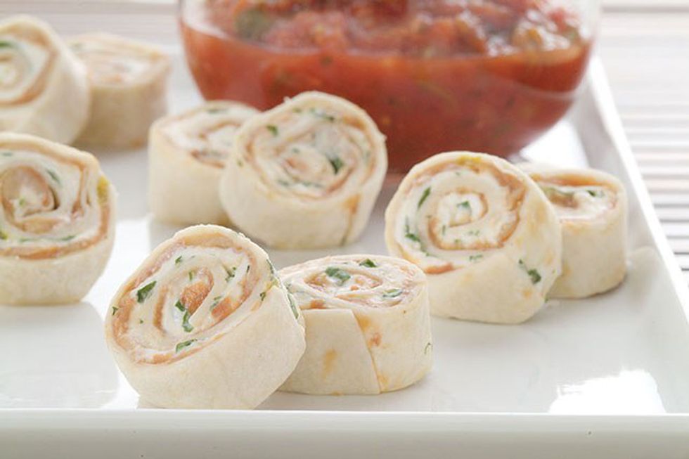 These are my favorite to make because they are always a hit, and it takes less than ten minutes to make dozens. The way I make my spicy roll-ups are by taking soft tortilla wraps, and laying them flat, and mixing together 8 ounce of cream cheese, with a packet of dry ranch mix. First I apply the cream cheese mixture to the flat soft tortilla, next I take spicy hoagie spread and dollop a few spoon-fulls on top of the cream cheese and spread it around evenly. Lastly I top the tortilla with turkey, you could easily use ham, but I prefer turkey. Once you have all of that you just roll the tortilla and then cut them into one inch chunks. One wrap makes about 9 inch servings.