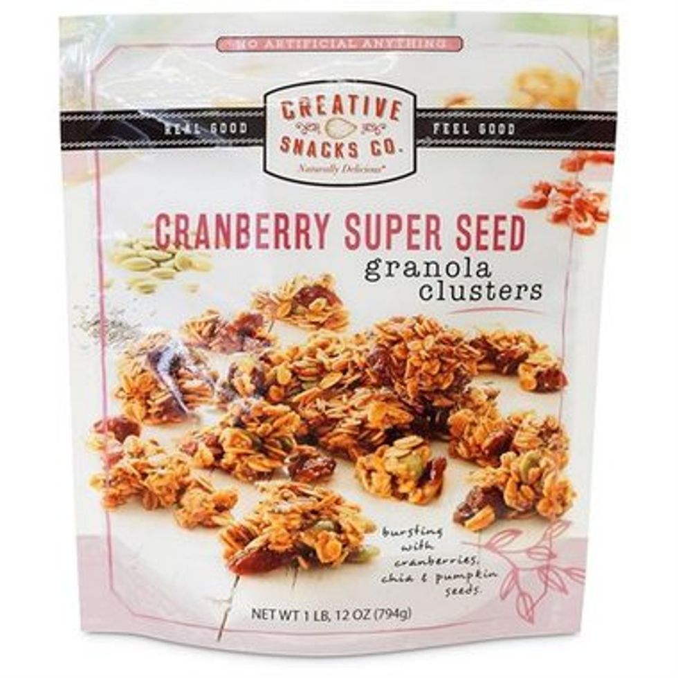 Soft granola is a really good snack when you’re craving something sweet because it almost tastes like an oatmeal cookie. My personal favorite kind is the Creative Snacks brand Cranberry Super Seed Granola Clusters. It does have a little bit of added sugar, but in reality it’s a lot better than a lot of other things we eat.