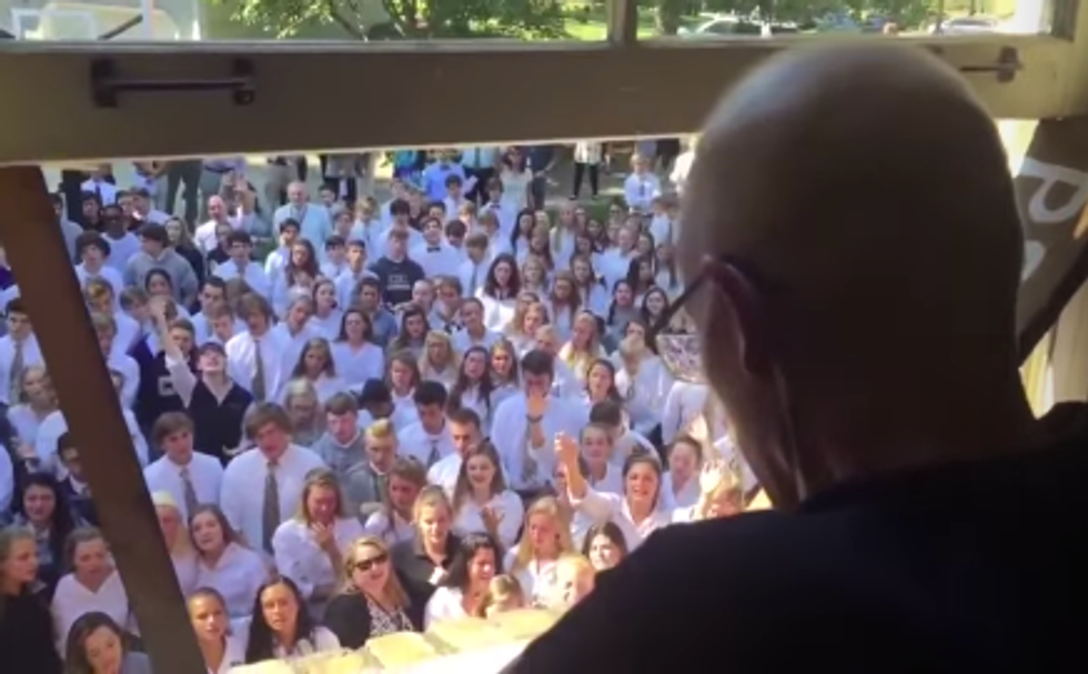 A few nights ago, as I was scrolling aimlessly through my Twitter feed, I came across a video that had me awestruck, enthralled, and at a loss for words. The 58 second video captures a large group of students gathered on the lawn outside their teacher's home, singing gospel music as he listens and watches through his window.