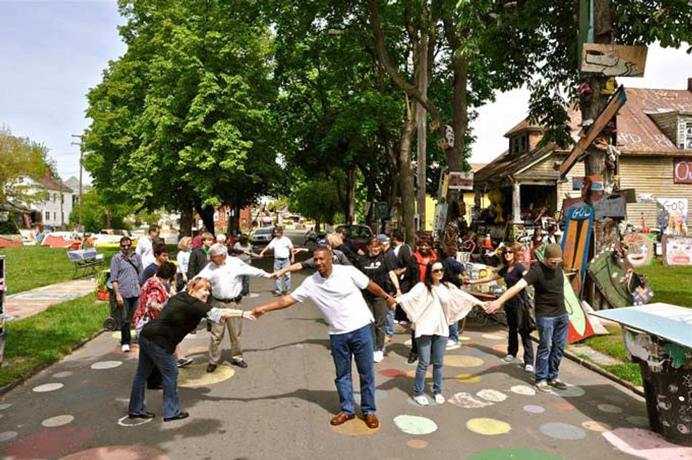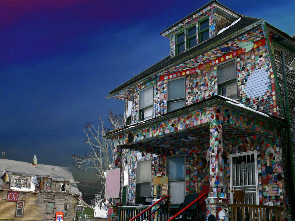 Then-Mayor Coleman A. Young was one of these criticizers, and consistently proclaimed that the houses weren’t art and pushed plans to take it down under the claim that it interfered with urban planning initiatives. Under his term, three houses on the street were completely demolished, including “The Baby Doll House,” “Fun House,” and “Truck Stop.” In 1999, under Mayor Dennis Archer, three more houses were destroyed, including “Your World,” “Happy Feet,” and “The Canfield House.”